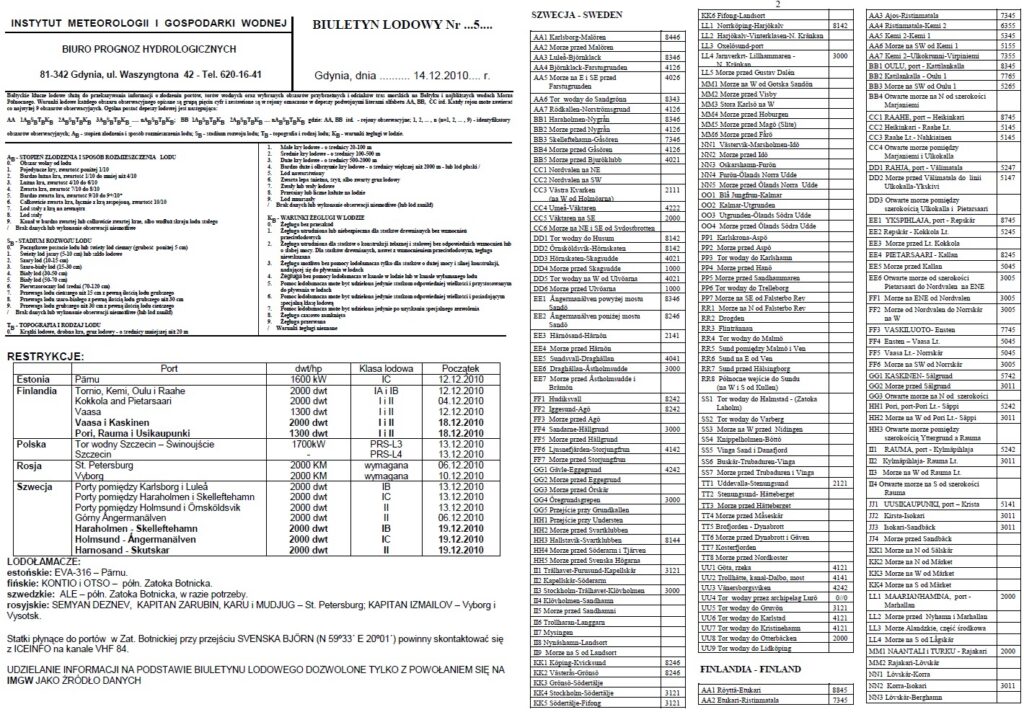 Biuletyn Lodowy – tabelaryczny zbiór zakodowanej informacji o zlodzeniu dla wybranych obszarów Morza Bałtyckiego.