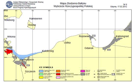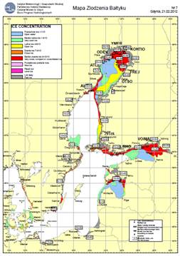 Mapa Zlodzenia Bałtyku i Polskiej Strefy Brzegowej – przedstawia aktualną sytuację lodową na Bałtyku i w polskiej strefie brzegowej. Stanowi ona graficzne uzupełnienie informacji zamieszczonych w Biuletynie Lodowym. Produkt powstaje przy użyciu zdjęć satelitarnych, kamer internetowych, filmów lub zdjęć ze zwiadów lotniczych, obserwacji zlodzenia na stacjach PSHM, wymiany danych pomiędzy BSIS oraz Urzędami Morskimi.