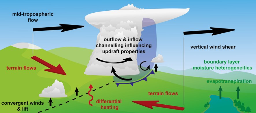 W artykule dokonano przeglądu aktualnego stan badań nad burzami w obszarach o złożonej orografii. W publikacji omówiono aspekty nasilenia zjawisk burzowych, zmian środowiska konwekcyjnego, inicjacji konwekcji, modelowania i prognozowania numerycznego, klimatologii i zmiany klimatu, a także tematykę innowacyjnych obserwacji burz.