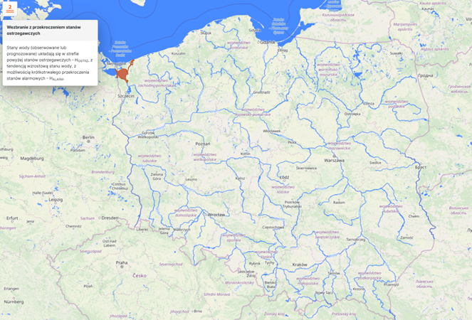 Rys. 1 Aktualne zbiorcze zestawienie ostrzeżeń nad obszarem Polski