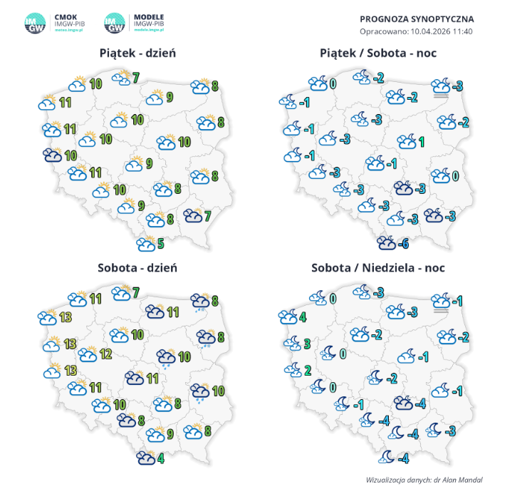 Rys.3. Synoptyczna prognoza pogody na weekend 10-12.04.2026, fot. Sandra Sowińska-Pazio