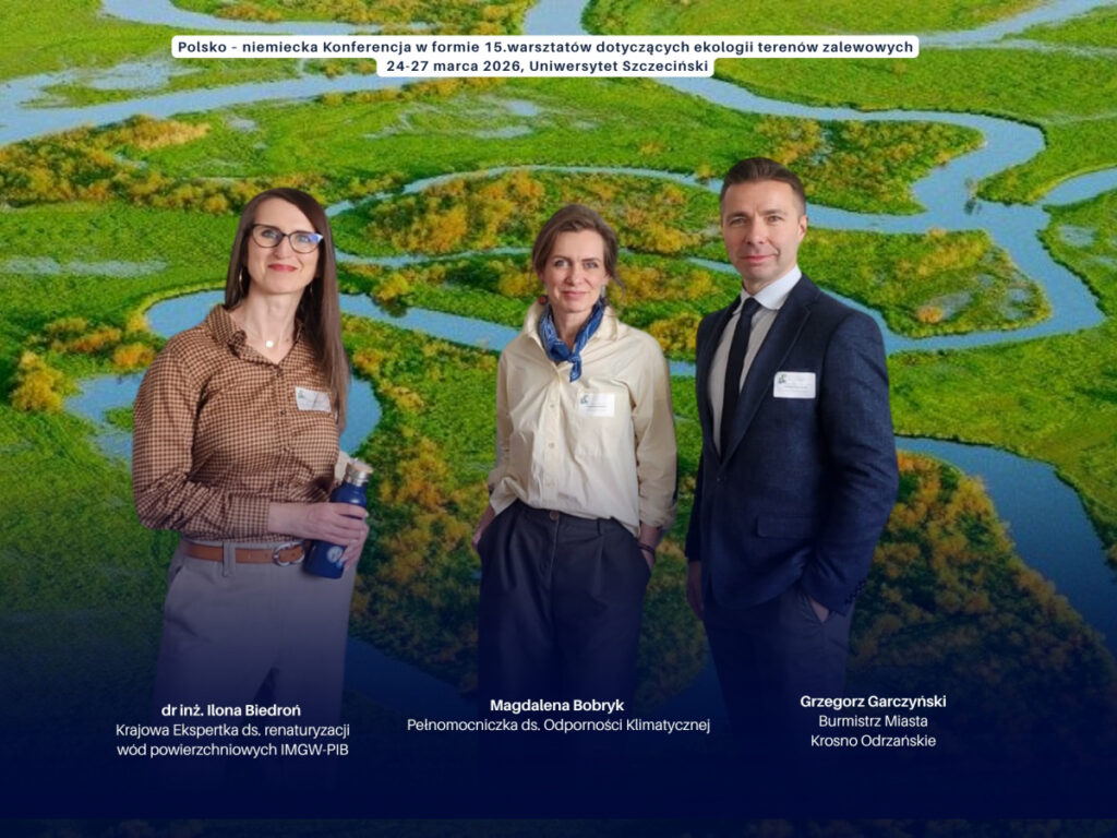 Przedstawiciele Instytutu Meteorologii i Gospodarki Wodnej – Państwowego Instytutu Badawczego wzięli udział w międzynarodowej konferencji dotyczącej ekologii terenów zalewowych, która odbyła się w dniach 24-27 marca na Uniwersytecie Szczecińskim. Jednym z kluczowych elementów wydarzenia była prezentacja współpracy IMGW‑PIB z gminą Krosno Odrzańskie w zakresie bezpieczeństwa wodnego, zarządzania ryzykiem powodziowym i odporności klimatycznej.