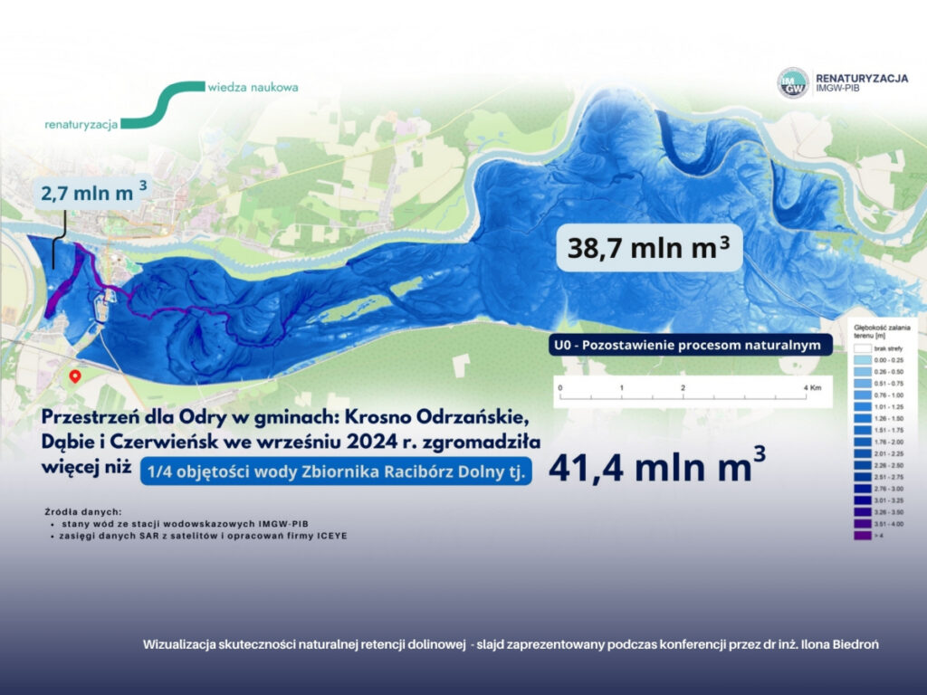 Podczas prezentacji szczególną uwagę zwrócono na korzyści, jakie gmina Krosno Odrzańskie uzyskuje ze współpracy z IMGW-PIB, wykorzystując dane, analizy i narzędzia naukowe do podejmowania decyzji dotyczących gospodarki wodnej i planowania przestrzennego. Szczególną rolę odgrywa tu podejście „przestrzeń dla rzeki”, testowane m.in. na odcinku doliny Odry w rejonie 515 kilometra drogi wodnej, gdzie prowadzone są działania w modelu współtworzenia (co-creation).