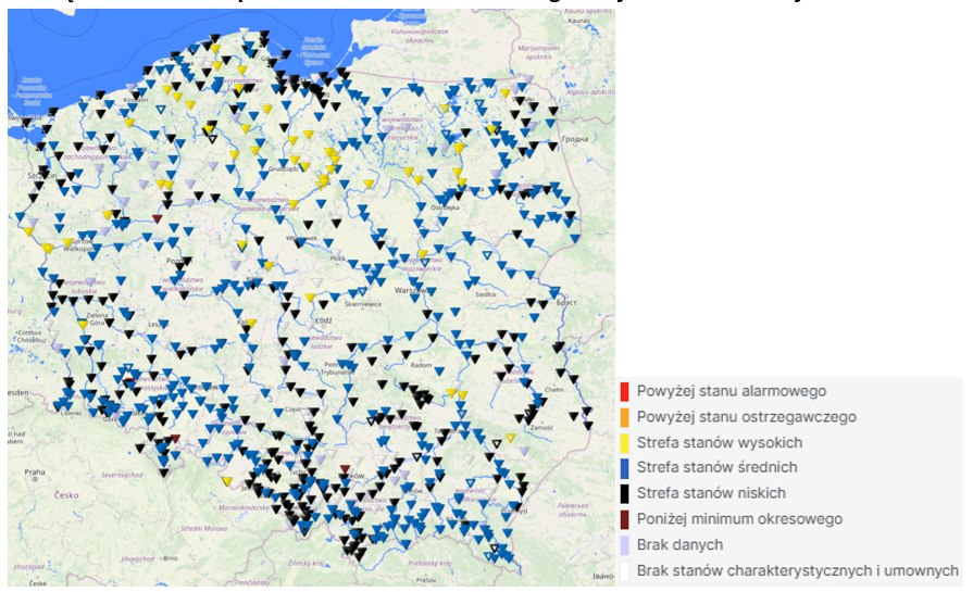 Na rzekach w Polsce dominuje stan wody średniej (52% wszystkich stacji hydrologicznych) i niskiej (43%). Lokalnie notowany jest stan wody wysokiej (5%).