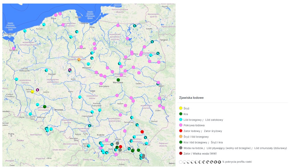 - Śryż i/lub lód brzegowy obserwowano lokalnie na Wiśle, Przemszy, Sole, Rabie, Dunajcu, Wisłoce, Sanie, Wisłoku, Pilicy, Supraśli, Biebrzy, Orzycu i Krznie.