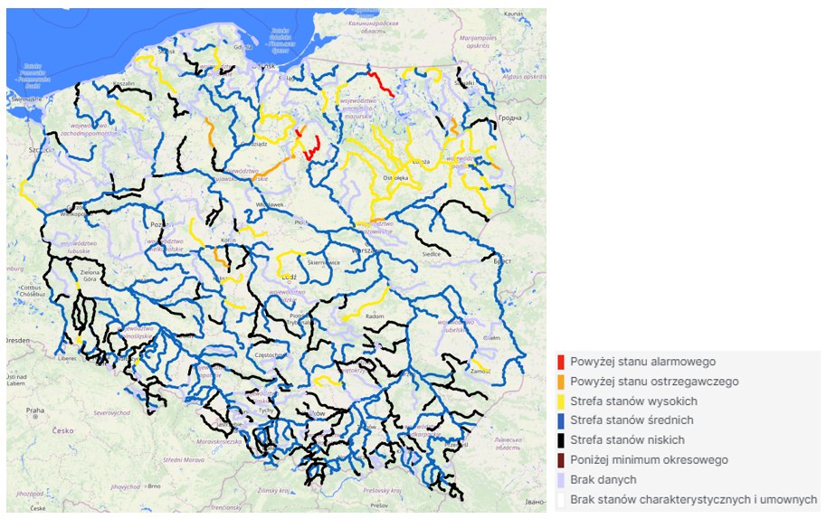 Na stacjach hydrologicznych w Polsce nie zanotowano przekroczenia stanu alarmowego.