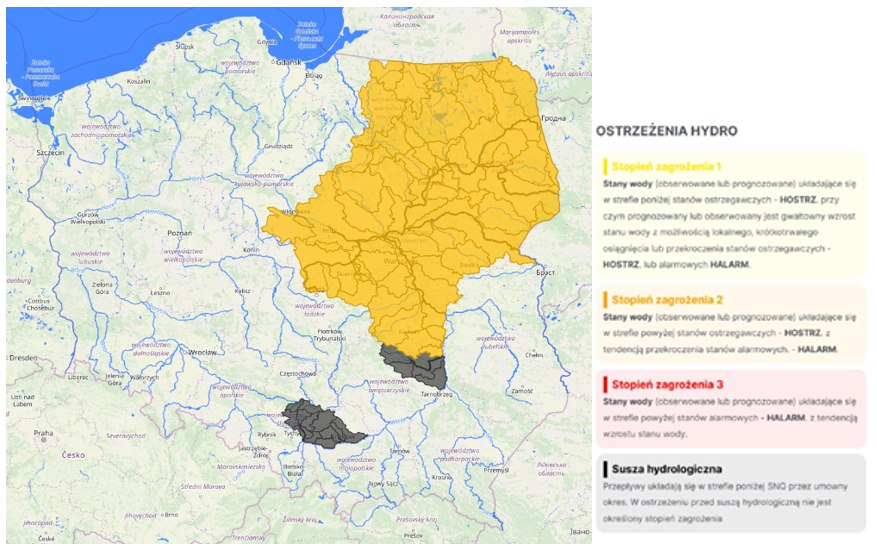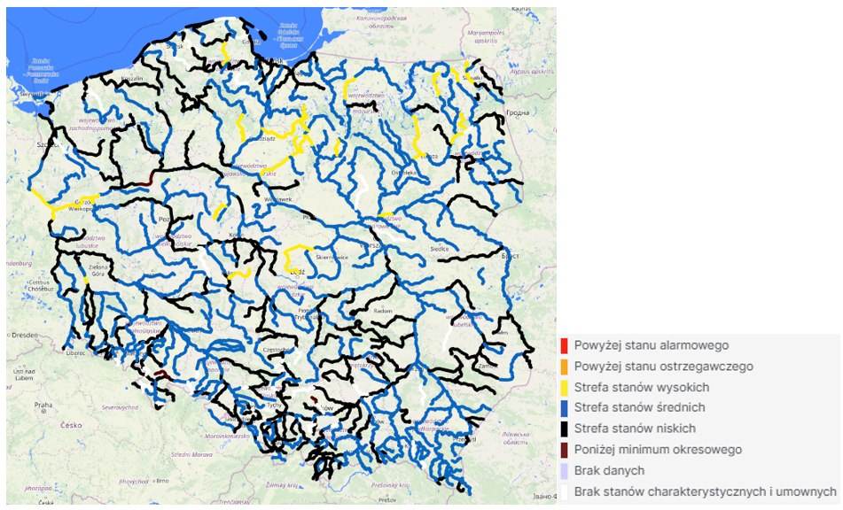 Na stacjach hydrologicznych w Polsce nie zanotowano przekroczenia stanu alarmowego ani stanu ostrzegawczego.