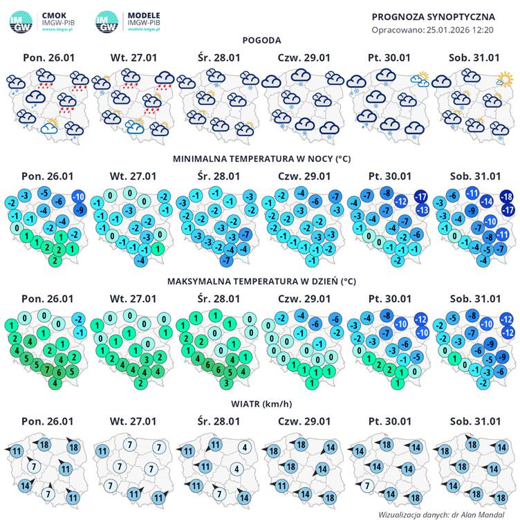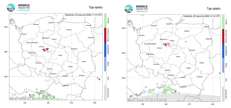 Sytuacja meteorologiczna (25.01.2026, stan na godz. 12:00)