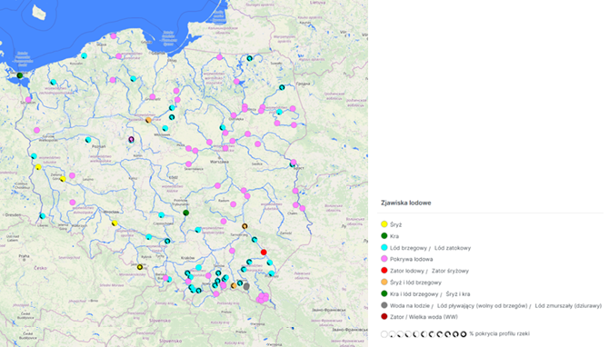 • Śryż i/lub lód brzegowy obserwowano lokalnie na Wiśle, Przemszy, Wisłoce, Sanie, Wisłoku, Supraśli, Biebrzy, Orzycu i Krznie.