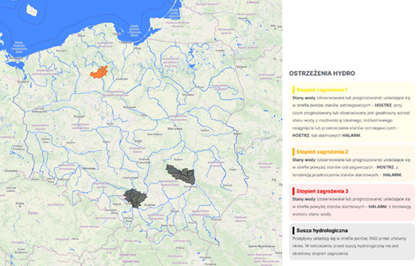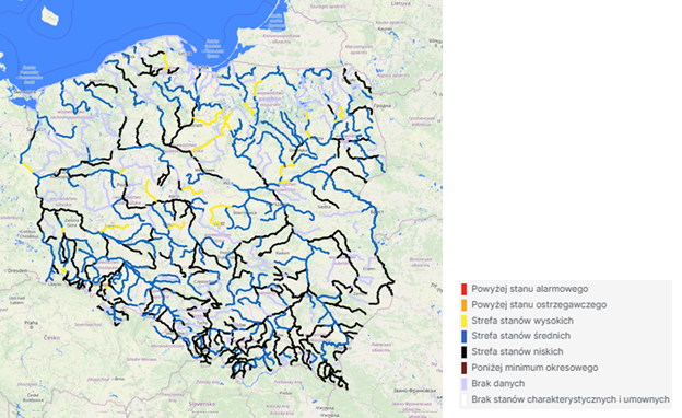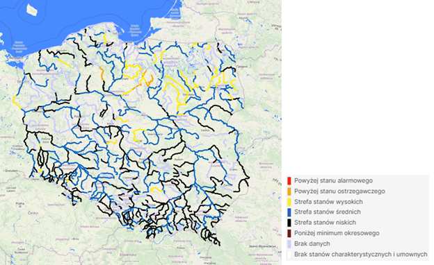 Na stacjach hydrologicznych w Polsce nie zanotowano przekroczenia stanu alarmowego.