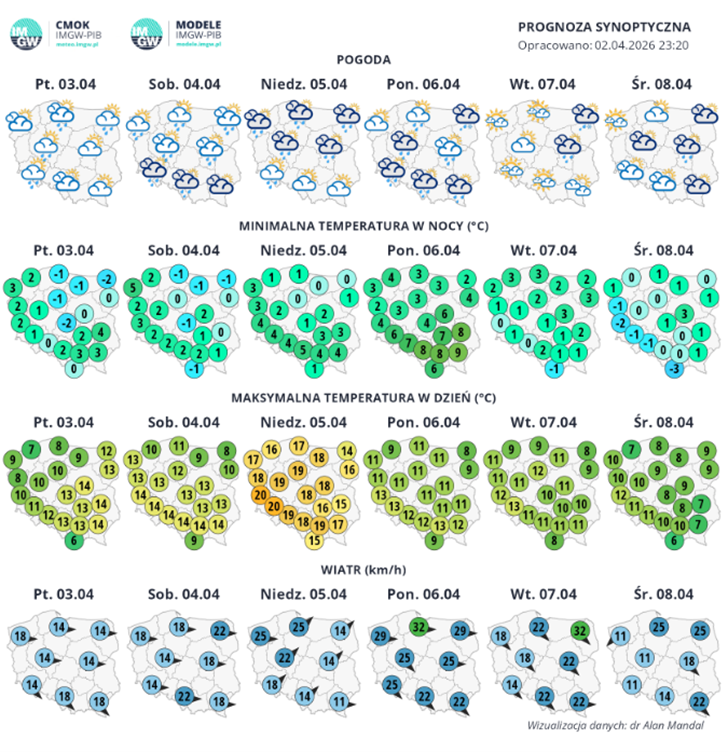 Rys.2. Synoptyczna prognoza pogody (03-09.04.2026), fot. Przemysław Makarewicz
