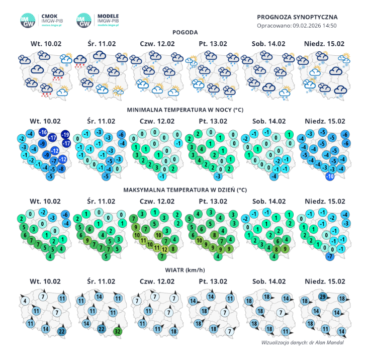 Rys. 1. Synoptyczna prognoza pogody na tydzień 09-15.02.2026