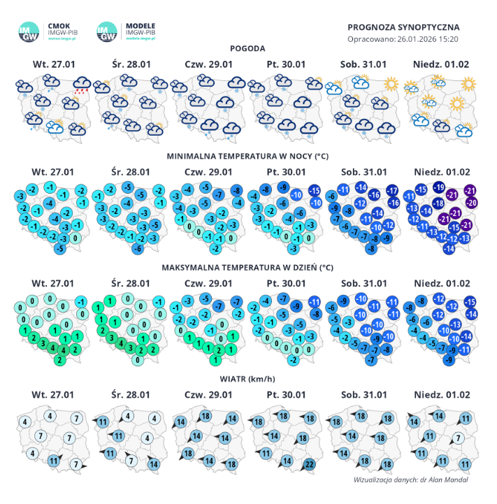 Rys. 1. Synoptyczna prognoza pogody na tydzień 26.01-01.02.2026