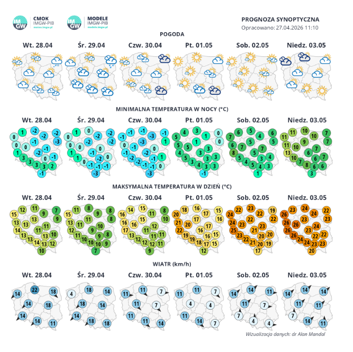 Rys.2. Synoptyczna Prognoza pogody na tydzień 27.04-03.05.2026,  fot. Sandra Sowińska-Pazio