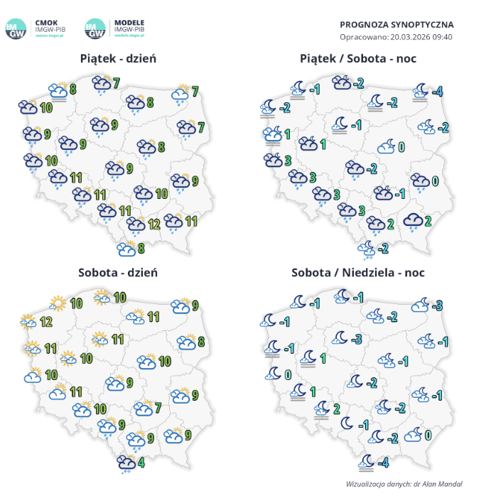Rys.2. Synoptyczna prognoza pogody na weekend 20-22.03.2026