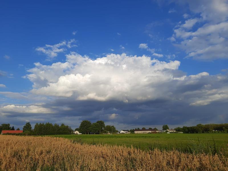 Zachmurzenie duże z większymi przejaśnieniami. Przelotne opady deszczu. Miejscami burze, lokalnie z gradem. Prognozowana wysokość opadu na ogół do około 10 mm, podczas burz do 20 mm. Temperatura maksymalna od 20°C do 23°C. Wiatr słaby i umiarkowany, z kierunków zachodnich. W czasie burz porywy wiatru do 70 km/h.