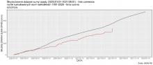 Skumulowana liczba dni z opadem (liczona od 1 stycznia 2020 r.) na większości stacji była zgodna z normą, chociaż na niektórych przekraczała ją w granicy do 10-12%, a na innych była niższa od normy o maksymalnie 10 dni.